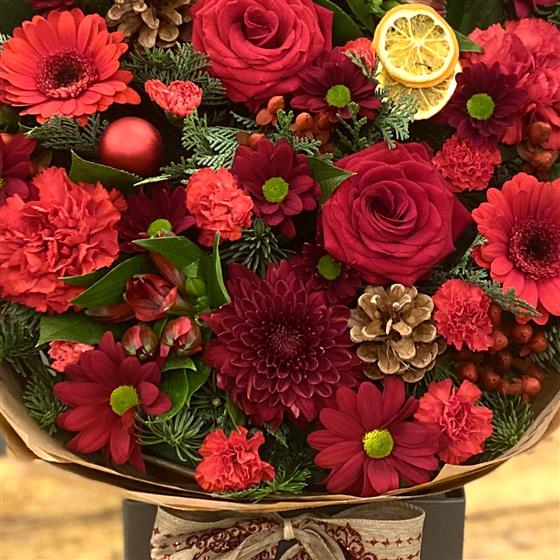 Medium Rosy Red Christmas Bouquet